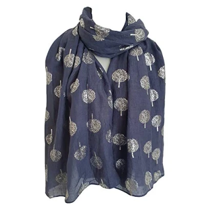GlamLondon Glitter Trees Scarf Womens Foil Printed Tree Fashion Ladies Wrap (Denim Blue)
