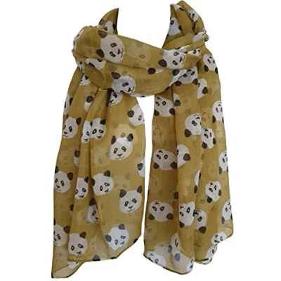 GlamLondon Panda Print Scarf Large Size Fashionable Cute Pandas Animal Printed Women Wrap (Mustard)
