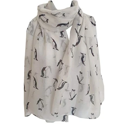 GlamLondon Penguin Scarf Winter Christmas Baby Penguins Birds Print Ladies Large Scarves Gift (Creamy White)