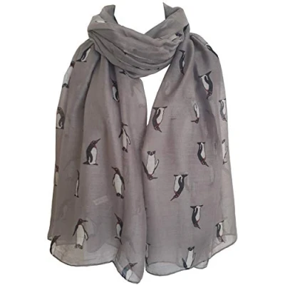 GlamLondon Penguin Scarf Winter Christmas Baby Penguins Birds Print Ladies Large Scarves Gift (Grey)