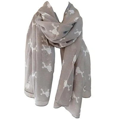 GlamLondon Poodle Print Scarf Dogs Fancy Puppies Breed Caniche Barbone Ladies Womens Wrap Shawl Sarong (Silver Grey)