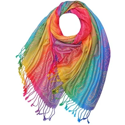 GlamLondon Rainbow Multi colour Pashmina Colourful Paisley/roses/Patches/Peacock Feather Soft Shawl (Rainbow Paisley STYL3)