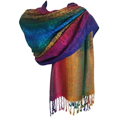 GlamLondon Rainbow Multi colour Pashmina Colourful Paisley/roses/Patches/Peacock Feather Soft Shawl (Rainbow Pata02)