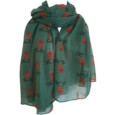 GlamLondon Red Nose Reindeer Christmas Print Scarf Womens Rudolph Scarves Festive Winter Gift (Green)