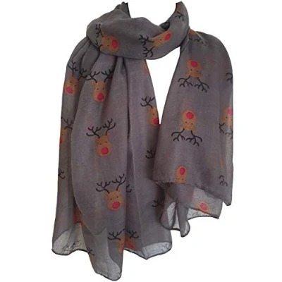 GlamLondon Red Nose Reindeer Christmas Print Scarf Womens Rudolph Scarves Festive Winter Gift (Grey)