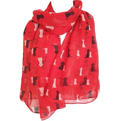 GlamLondon Retriever Labrador Dog Scarf Women's Fashion Large Lightweight Wrap Scarves (Red)
