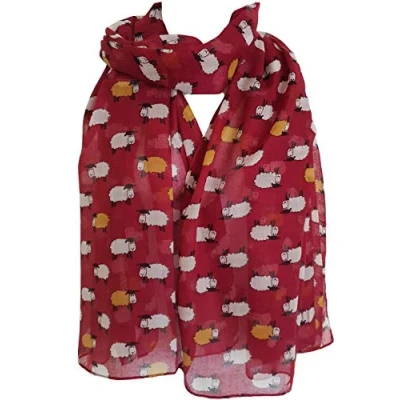 GlamLondon Sheep Herd Print Scarf Ladies Woolly Animal Fashion Shawl Wrap (Red)