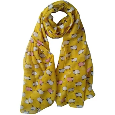 Sheep Print Scarf Large Size Approx. 80 X 180 cms (31 X 70 inches) GlamLondon Soft Skin-friendly Washable Material Fashionable: This scarf can be used for different occasions, such as party, or family travel, or at work. Can be worn around your neck, waist, or hair as well as on a hat or handbag, etc Ideal gift for your lover, coworkers, family and friends. Individually wrapped in a clear poly bag