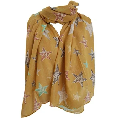 GlamLondon Star Print Scarf Large Size Fashionable Printed Stars Women Wrap (ZU8214 MUSTARD)