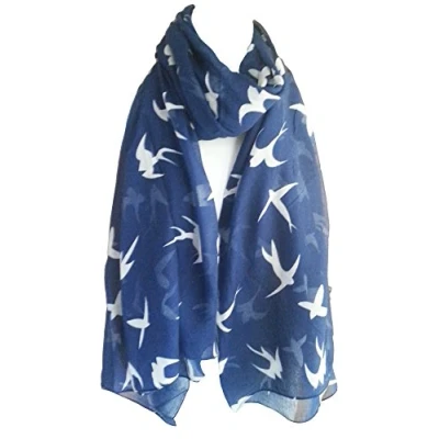 GlamLondon Swallow Bird Print Scarf Navy Blue Soft Big Womens Ladies Summer Fashion Wrap