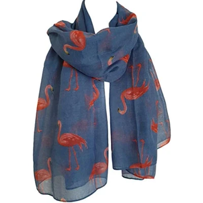 GlamLondon Watercolour Flamingo Scarf Ladies Lightweight Printed Fashion Oversize Wrap (Y19 Denim)