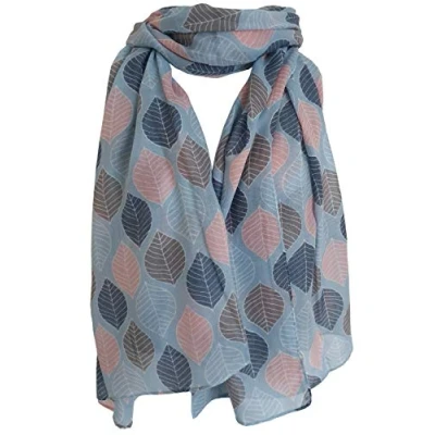 GlamLondon Women's Beautiful Designed Large Leaves Print Scarf (Blue Sky)