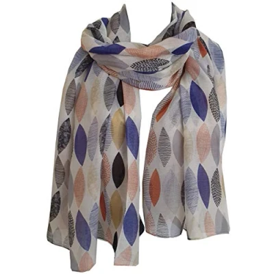 White Multi-colour Patterned Leaves Print Scarf Large Size Approx. 80 X 180 cms (31 X 70 inches) GlamLondon Soft Skin-friendly Washable Material Fashionable: This scarf can be used for different occasions, such as party, or family travel, or at work. Can be worn around your neck, waist, or hair as well as on a hat or handbag, etc Ideal gift for your lover, coworkers, family and friends. Individually wrapped in a clear poly bag