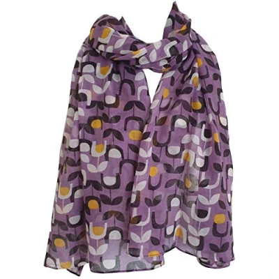 GlamLondon Women's Block Floral Print Scarf Retro Wrap (Purple)