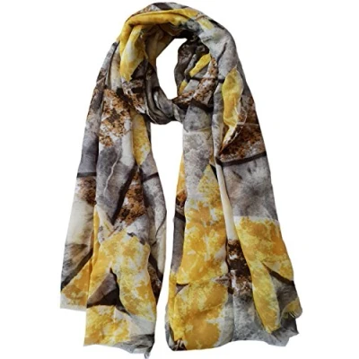 GlamLondon Women's Bright Printed Leaves Scarf (Yellow)