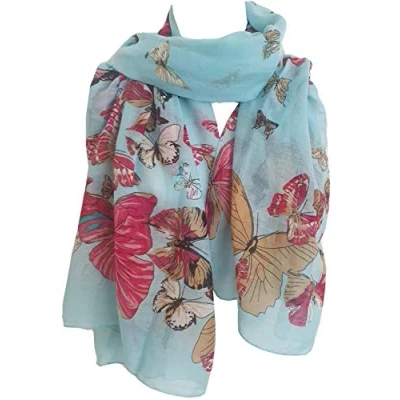 GlamLondon Women's Butterfly Print Scarf (BM Blue Light)