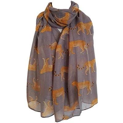 GlamLondon Women's Cheetah Print Scarf New Leopard Animal Oversize Design (Grey)