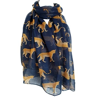 GlamLondon Women's Cheetah Print Scarf New Leopard Animal Oversize Design (Navy)