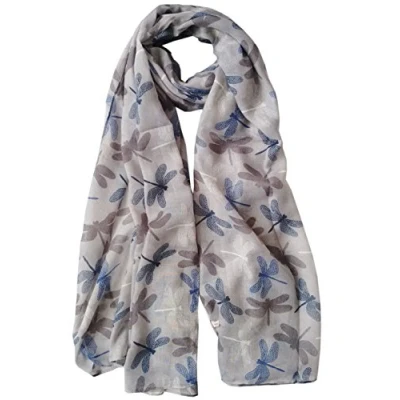 GlamLondon Women's Chic Dragonfly Print Scarf (Grey New)