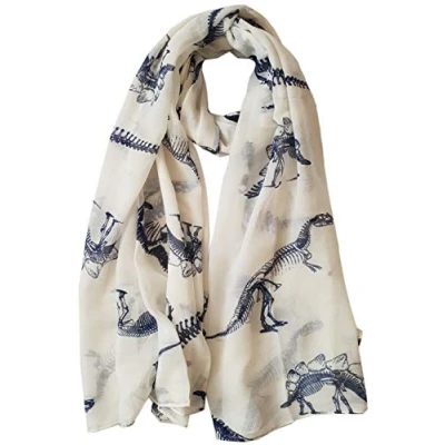 GlamLondon Women's Dinosaurs Print Scarf (Creamy White)(Size: Large)