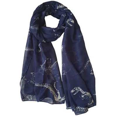 GlamLondon Women's Dinosaurs Print Scarf (Navy Blue)(Size: Large)