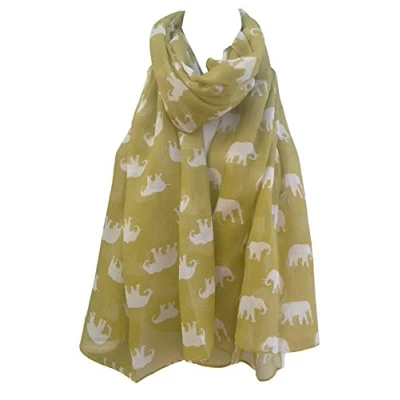 GlamLondon Women's Elephant Print Scarf Mustard Green