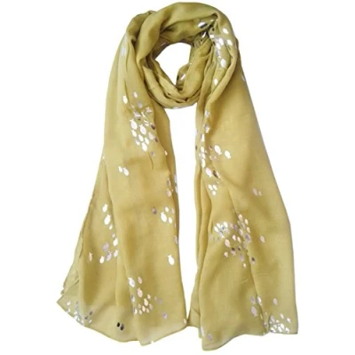 GlamLondon Women's Glitter Foil Fish Printed Scarf (Mustard Green)