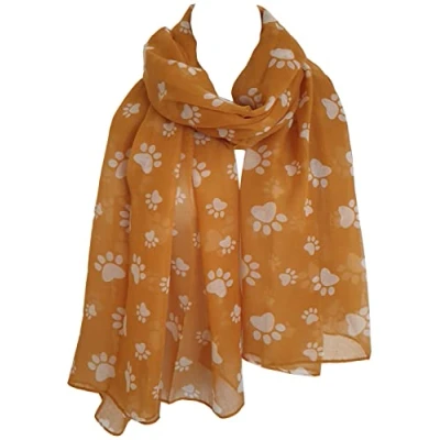 GlamLondon Women's Paw Print Scarf Animal Cats Dogs Paws Wraps Shawl Scarves (Mustard)