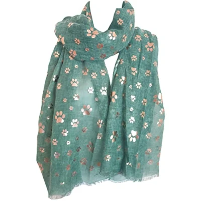 GlamLondon Women's Paw Print Scarf Metallic Foil Animal Cats Dogs Paws Glitter Wraps Shawl Scarves (Green)