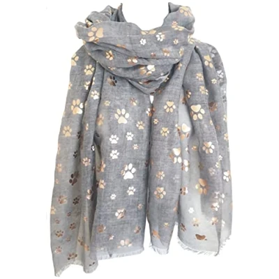 GlamLondon Women's Paw Print Scarf Metallic Foil Animal Cats Dogs Paws Glitter Wraps Shawl Scarves (Grey)