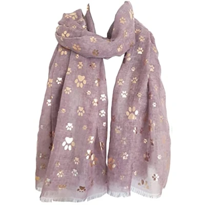 GlamLondon Women's Paw Print Scarf Metallic Foil Animal Cats Dogs Paws Glitter Wraps Shawl Scarves (Pink)