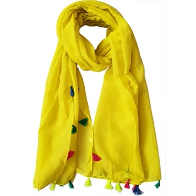 GlamLondon Women's Plain Scarf with Tassel (Yellow)