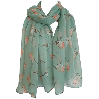 GlamLondon Women's Watercolour Robin Bird Printed Christmas Scarf (Mint Green)