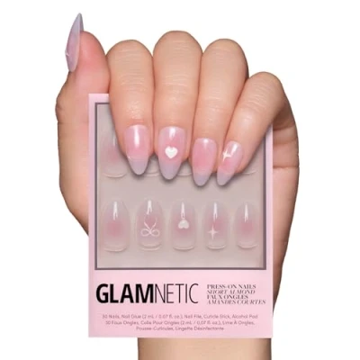 High-Quality Press-On Nail Kit: All Glamnetic Press-On Nail Sets offer high-quality salon style and feature protective UV coating, to ensure your nails will never break or split! Tie your look together with Lovers Knot — pink semi-transparent nails with raised bows and sparkle accents for an extra dose of charm. Whether for romantic evenings or fun nights out, these playful short almond nails add a whimsical twist to your style. Premium Durability with Up To 2 Weeks Per Wear - High-quality is our middle name. This customizable nail set can be trimmed, filed, or polished to your liking. 30 Nails in 15 Sizes - Various nail sizes ensure a totally custom fit, plus we give you extras just in case! Each set comes complete with a storage box, nail glue, double-sided nail file, cuticle stick, and alcohol pad. Gentle On The Hands - Soak hands in warm water for 10 minutes for an easy removal, and gently lift press-on nails from the side. Remove excess glue with a nail buffer, and store for reuse.