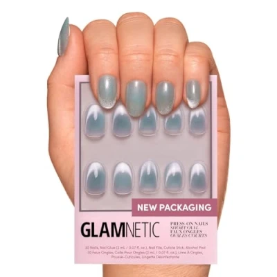 High-Quality Press-On Nail Kit: All Glamnetic Press-On Nail Sets offer high-quality salon style and feature protective UV coating, to ensure your nails will never break or split! Get your mythical look on with the Unicorn Tears Nail Set! This multidimensional hue features a misty gray-blue shade, with a mesmerizing “velvet” metallic finish that’s majorly trending right now. Plus, our new short oval shape is perfect for elevating your everyday mani. Premium Durability with Up To 2 Weeks Per Wear - High-quality is our middle name. This customizable nail set can be trimmed, filed, or polished to your liking. 24 Nails in 12 Sizes - Various nail sizes ensure a totally custom fit, plus we give you extras just in case! Each set comes complete with a storage box, nail glue, double-sided nail file, cuticle stick, and alcohol pad. Gentle On The Hands - Soak hands in warm water for 10 minutes for an easy removal, and gently lift press-on nails from the side. Remove excess glue with a nail buffer, and store for reuse.
