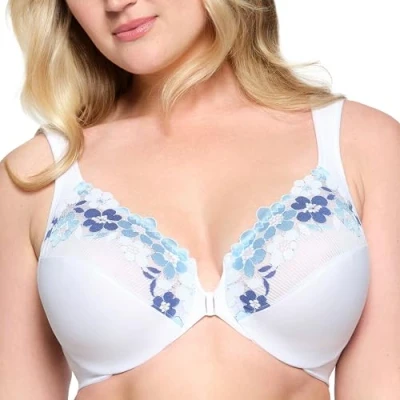 WONDERWIRE TECHNOLOGY: A padded underwire adds an extra layer of cushion to prevent wire poke. COMFORT: Heathered cotton fabrics for all-day comfort. FRONT CLOSURE: Easy on and off secure front closure. CUSTOM FIT: Wide, cushioned straps adjust to your fit. DESIGNED IN NEW YORK SINCE 1921: We have over 100 years experience crafting bras for curvy women. Closure: Snap Front Close Strap Type: Adjustable Wide Cushioned Shoulder Straps Back Style: Leotard Support Level: Medium Features: Cushioned Wire, Stretch Lace Cups, Moisture Wicking, Side Smoothing SHape Enhancer, Underwired