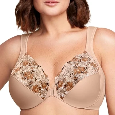 WONDERWIRE TECHNOLOGY: A padded underwire adds an extra layer of cushion to prevent wire poke. SUPPORT: Lace-topped cups feature side-bust control to shape and support. FRONT CLOSURE: Easy on and off secure front closure. CUSTOM FIT: Wide, cushioned straps adjust to your fit. DESIGNED IN NEW YORK SINCE 1921: We have over 100 years experience crafting bras for curvy women. Closure: Snap Front Close Strap Type: Adjustable Wide Cushioned Shoulder Straps Back Style: Leotard Support Level: Medium Features: Cushioned Wire, Stretch Lace Cups, Moisture Wicking, Side Smoothing SHape Enhancer, Underwired