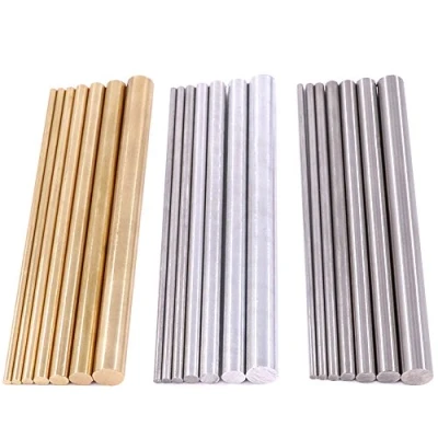 1. Materials included: Brass, stainless steel, aluminum 2. Diameter: 2mm, 2.5mm, 3mm, 4mm, 5mm, 6mm, 8mm 3. Package: 1pc for each size, 7 sizes for each material, 21pcs in total, stored in a transparent box 4. Feature: Good material for DIY craft making, sturdy and durable 5. Application: Widely used in Gear shaft, motor shaft, short support shaft, shaft pocket model, miniature axle, model plane, model ship, model cars