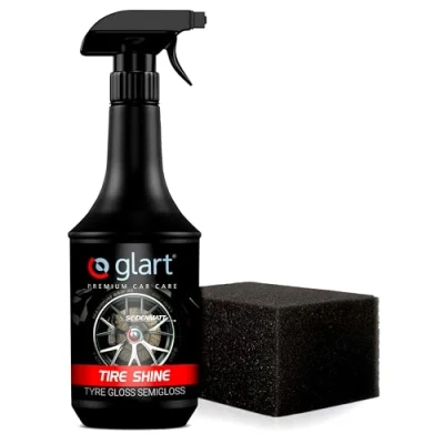 Glart 451RK Car Tyre Shine and Plastic Care, Rubber Silky Matt, 1,000 ml, with Applicator Sponge, Black