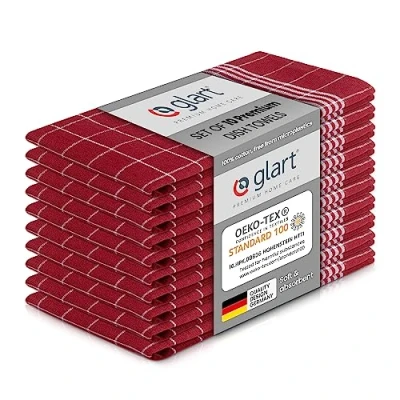 ✅ VERSATILE: Glart cotton tea drying towels are suitable for washing, wiping and drying dishes, glasses and kitchen utensils; indispensable in the kitchen & bathroom; Premium quality: tested for harmful substances and certified according to OEKO Tex Standard 108 ✅ HIGHLY ABSORBENT AFTER PRE-WASH: The drying towels are 70x50 cm in size, easy to care for, washable at 60°C and suitable for tumble drying; each tea towel with hanger; Professional quality developed in Germany; Great as a napkin, checkered tablecloth for decoration ✅ PROFESSIONAL QUALITY: Highly absorbent after repeated washing. While many competitors rely on cheap material, Glart offers guaranteed high water absorption, minimal shrinkage and a high cloth weight of over 70g, made from 100% certified fabric. Cotton. ✅ ROBUST AND RESISTANT: Glart kitchen towels are ideal for the hotel and catering industry; We have been producing professional cleaning cloths for 22 years; The dishcloths are very durable and remain permanently supple and absorbent ✅ NUMEROUS VARIANTS in many colors at an affordable set price: you can never have enough dishcloths in stock for washing up in the home, catering establishment, event or office