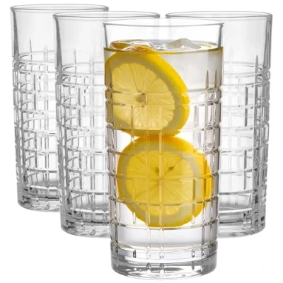 Glasmark KROSNO 1992 Drinking Glasses Set Long Drink 4 Piece 320 ml Water Juice Glass Ground Dishwasher Safe