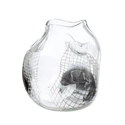 Glass Art Vase Grid Clear, Black Coloured Height 22 cm Waterproof Table