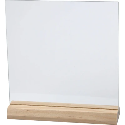 Creativ Glass Plate with Wooden Holder – 15.5 x 15.5 cm, Pack of 10 Sets. Elevate your crafting and display projects with this stylish set of transparent glass plates, each paired with a natural wooden holder. Designed with smooth, polished edges and a clean, modern look, these square plates offer a versatile base for creative expression, signage, or elegant presentation.. Size: 15.5 x 15.5 cm square plates. Thickness: 28 mm – sturdy and durable. Quantity: 10 sets per pack (glass plate + wooden holder). Material: Clear glass with smooth, polished edges. Base: Loose wooden holder for stable and elegant display. Perfect for:. Photo display and framed quotes. Table signs for weddings, events, or cafés. Custom vinyl decals or painting on glass. Home, office, or retail décor. These glass display plates with wooden stands offer a clean and minimal aesthetic, making them ideal for personalized gifts, signage, or artistic projects that stand out.