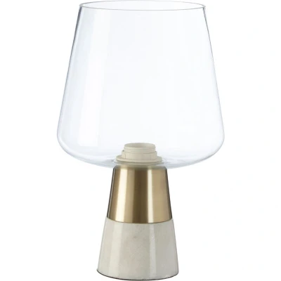 The Interiors by Premier Table Lamp Sebah Marble Gold/White (33cm) features a round transparent glass shade and a refined antique bronze and white marble base, offering Nordic-inspired elegance for any room. Its sculptural silhouette harmonises with both minimalist and luxury interiors; bulb not included, and care requires only gentle dry wiping.
