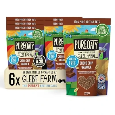 Glebe Farm Gluten Free PureOaty Chocolate Oat Granola 6PK, Healthy Wholegrain Oats To Help Lower Cholesterol, 100% British Oats, Vegan & High In Fibre, Delicious Cereal, 6x 325g
