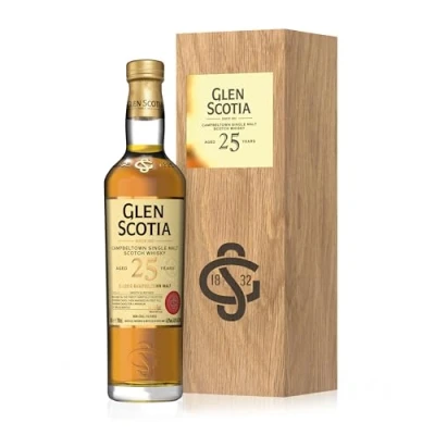 AWARD-WINNING SCOTTISH WHISKY: Experience Glen Scotia’s 25 year old whisky—Campbeltown’s liquid gold. A Platinum (2024) winner at the San Francisco World Spirits Competition, this single malt whisky is matured in the finest American oak barrels, then married in first-fill bourbon casks before bottling. RICH, BALANCED & REFINED: Savor the layered notes of red apple, tangy orange peel, creamy vanilla, and caramel sweetness in this delectable Scotch Whisky. A hint of sea spray adds depth, unfolding into a long, refined finish with lingering sea salt and warm ginger spice. MASTERFULLY CRAFTED WITH AUTHENTICITY: Master Blender Iain McAlister hand-picks each cask to preserve the whisky’s distinct Campbeltown character. With deep roots in the region, Iain ensures that every bottle reflects the authentic heritage and tradition of Campbeltown’s whisky-making legacy. PREMIUM WHISKY GIFT FOR COLLECTORS: Presented in a luxurious bottle with an elegant metal entwined ‘GS’ logo on the shoulder, and a gold-embossed display box, this Scottish whisky is an exquisite choice for whisky gifts for men- perfect for collectors or gifting to someone special. TRUST IN GLEN SCOTIA’S LEGACY: With more than 180 years of craftsmanship and multiple awards, including Platinum at the 2024 San Francisco World Spirits Competition, Glen Scotia continues to produce world-class whisky. Indulge in this remarkable 25-year-old expression.