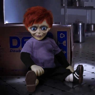 Get ready for some family drama with the Seed of Chucky Glen 15" Mezco Figure! This collectible brings to life the unique and chilling child of Chucky and Tiffany, offering a perfect blend of innocence and menace. Dressed in a distressed t-shirt, black shorts, and sneakers, Glen is a chip off the old block — but don't let the cute appearance fool you! Press the discreet button on their back to hear iconic phrases from the film like “Now we really will be a perfect family…” and “Are you proud of me now, daddy?!” The figure features realistic, glass-like eyes and boasts 11 points of articulation, making it a standout piece for collectors and horror fans alike. Standing approximately 15" tall and packaged in a window box, it’s ready for display in your collection. Perfect for fans of Seed of Chucky, this figure captures the haunting nature of Glen as they navigate the chaos of their parents' legacy. Whether you’re a die-hard horror fan or a Mezco collector, this piece is a must-have for your display!