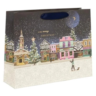 Glick Christmas Large Landscape Gift Bag, A Wide measuring 35.5cms x 27.5cms 10cm, Nostalgia Lane, Multi Coloured