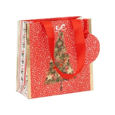 Printed on premium 210 Gsm paper for strength and style, perfect for Christmas The bag is recyclable once you remove the ribbon. The Christmas gift bag also comes with an attached Gift Tag for your own personal message. This small gift bag is perfect for wrapping those very small gifts, like earrings, a necklace or a voucher with ease, with over 80 designs and many different sizes of gift bag, we have something for everyone. Perfect for packing those tiny precious gifts at Christmas. The bag measures 14 x 14 x 6 cms. Part of Glick's premium collection of gift wrap, tags, bags, ribbons, tissue, napkins and other paper products for all seasons.