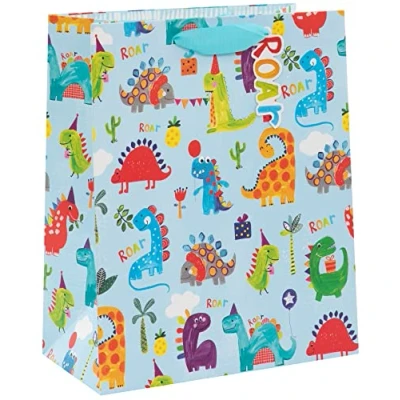 Glick Luxury Gift Bag, Dinosaur Roar Birthday Large Celebration Bag with Dinosaurs for Boys, Paper Salad Juniors Multi Colour, 260w x 315h 135d mm,Blue